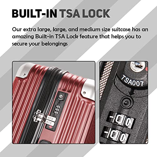 ATX Luggage Medium Suitcase Super Lightweight Durable ABS Hard Shell Suitcase with 4 Dual Spinner Wheels and Built-in TSA Lock (Cherry Red, 24 Inches, 65 Liter)