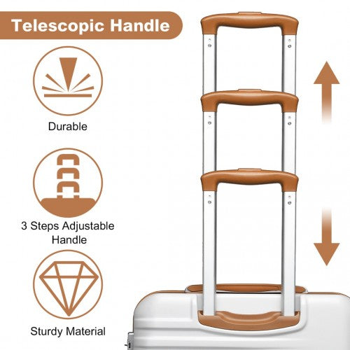 British Traveller 24 Inch Durable Polycarbonate - ABS Hard Shell Suitcase with TSA Lock - White