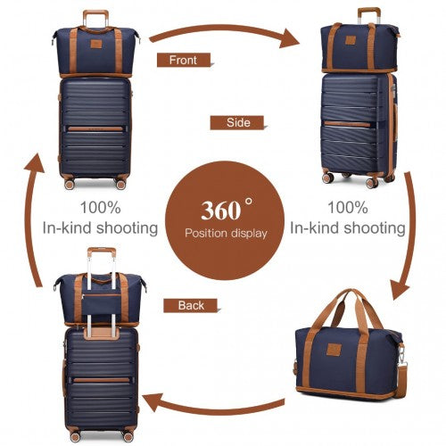British Traveller 5 Piece Polypropylene Hard Shell Suitcase Set With Tote Bag and Cosmetic Pouch - Navy/Brown