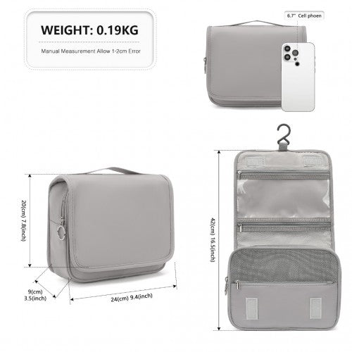Classic Hanging Multi-Pocket Waterproof Travel Makeup Bag - Grey