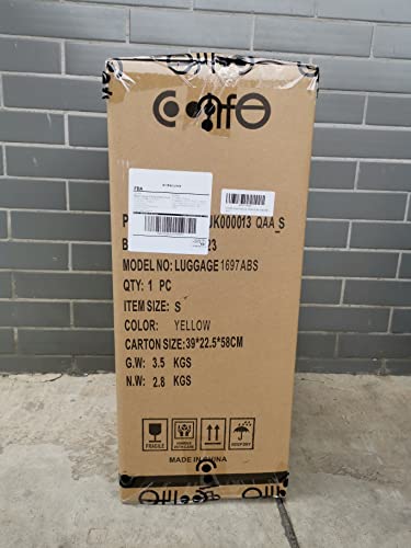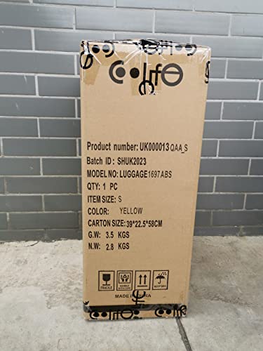 COOLIFE Suitcase Trolley Carry On Hand Cabin Luggage Hard Shell Travel Bag Lightweight with TSA Lock and 2 Year Warranty Durable 4 Spinner Wheels (Lemon Yellow, S(56cm 38L))
