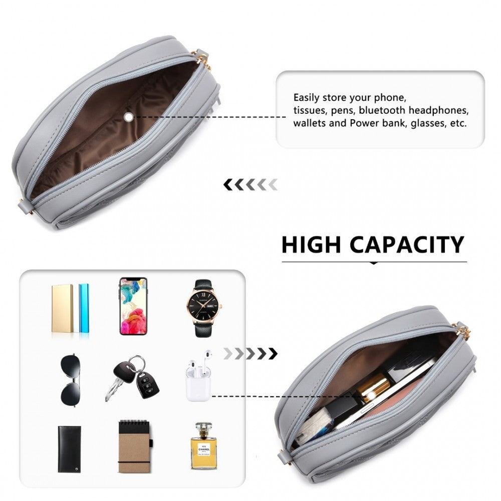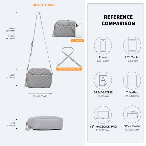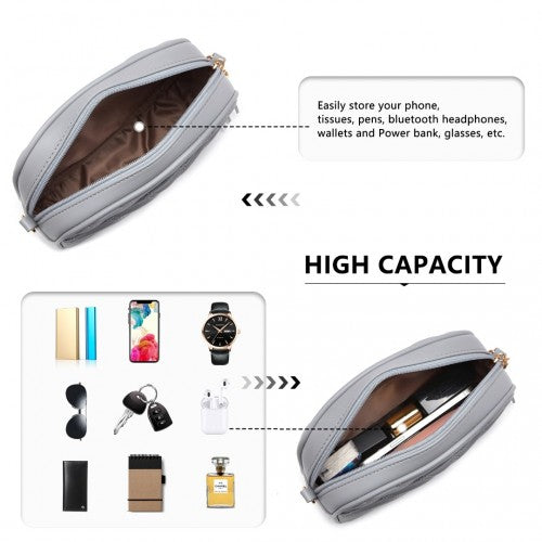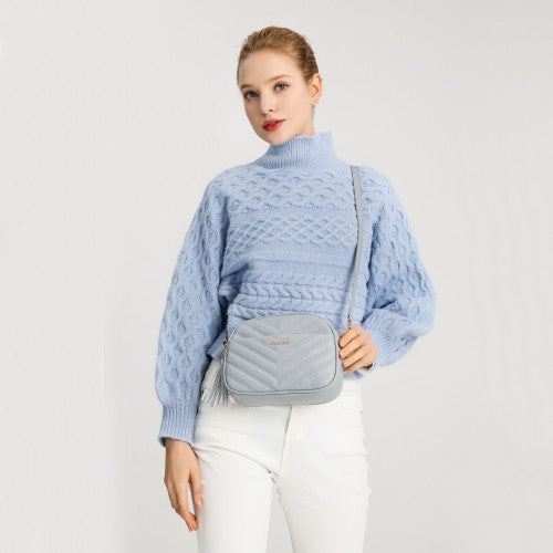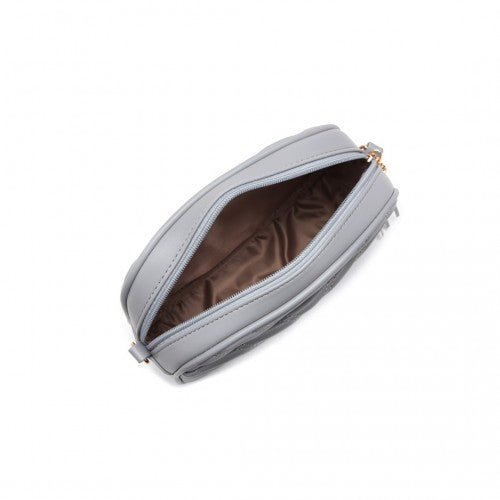 Miss Lulu Lightweight Quilted Leather Cross Body Bag - Grey