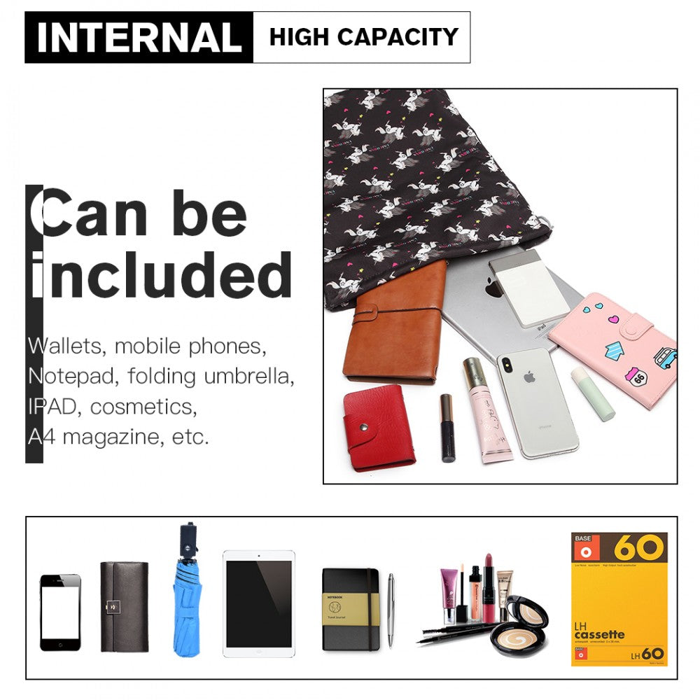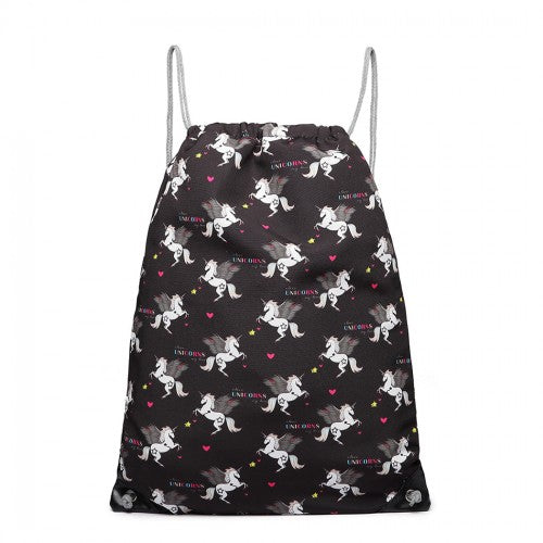 Miss Lulu Unicorn Print Drawstring Backpack - Black