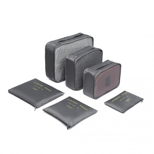 Kono 6 Piece Polyester Travel Luggage Organiser Bag Set - Grey