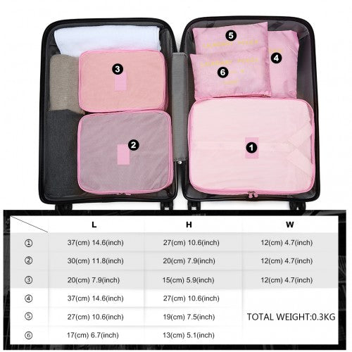 Kono 6 Piece Polyester Travel Luggage Organiser Bag Set - Pink
