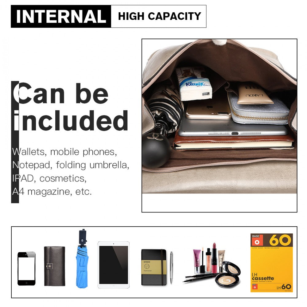 Miss Lulu Vintage Oil-Wax Faux Leather Backpack - Grey