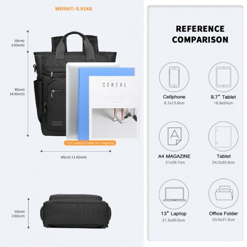 Kono Durable Waterproof Multi Men’s 30L Backpack Shoulder Bag - Black