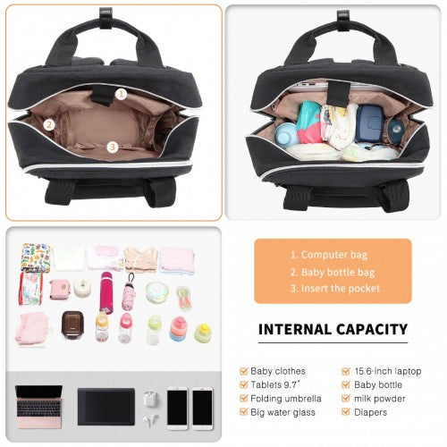 Kono Classic Multi Functional Changing Backpack With USB Charging Interface - Black