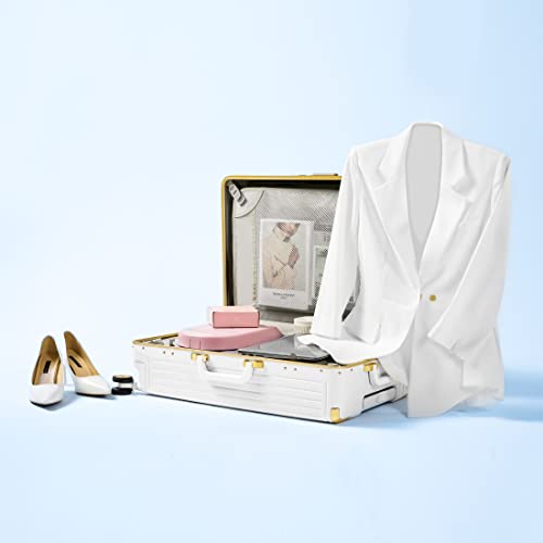 GinzaTravel Aluminum Frame+PC Suitcase Bright Color Suitcase TSA Combination Lock Universal Wheel, White, 0, Ginzatravel Classic Aluminum Frame Suitcase