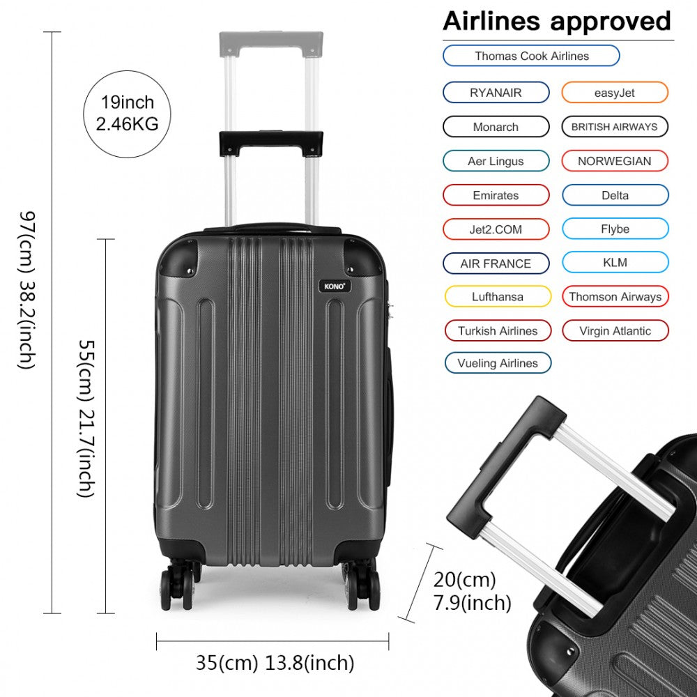 Kono 19/24/28 Inch Abs Hard Shell Suitcase 3 Pieces Set Luggage - Grey