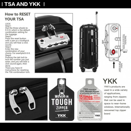 Kono 20/24/28” Hard Shell PP Suitcase Set - Black