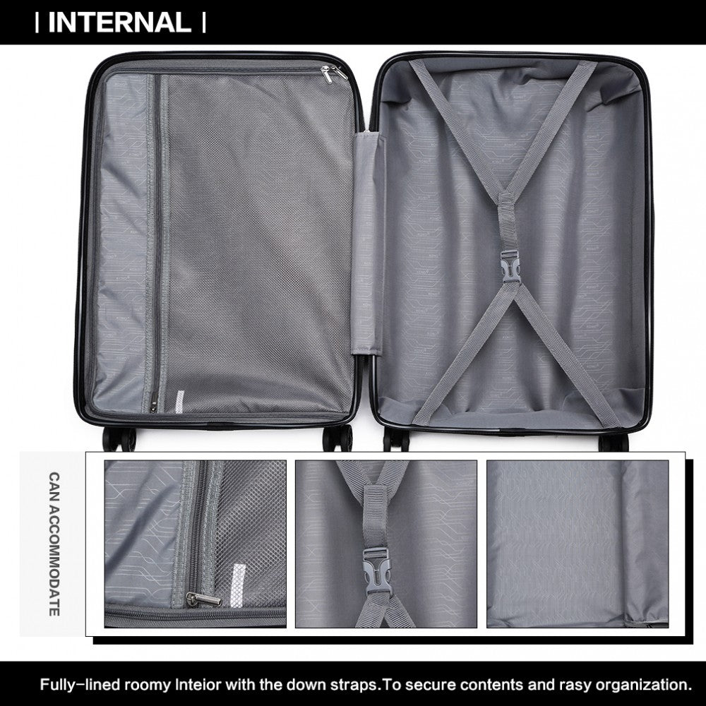 Kono Bright Hard Shell PP Suitcase 3 Pieces Set - Classic Collection - Black