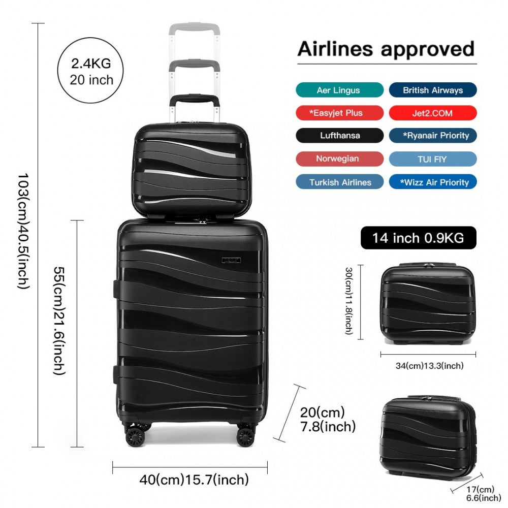Kono 14/20 Inch Lightweight PP Hard Shell 2 Piece Suitcase Set With TSA Lock And Vanity Case - Black