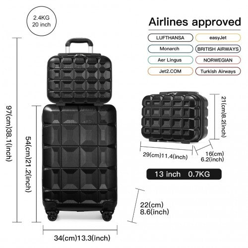K2292l - Kono 13/20 Inch Lightweight Hard Shell Abs Cabin Suitcase With TSA Lock And Vanity Case - Black