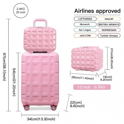 Kono 13/20 Inch Lightweight Hard Shell Abs Cabin Suitcase With TSA Lock And Vanity Case - Pink
