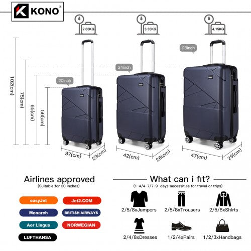 Kono 20-24-28” Bandage Effect Hard Shell Suitcase - Navy