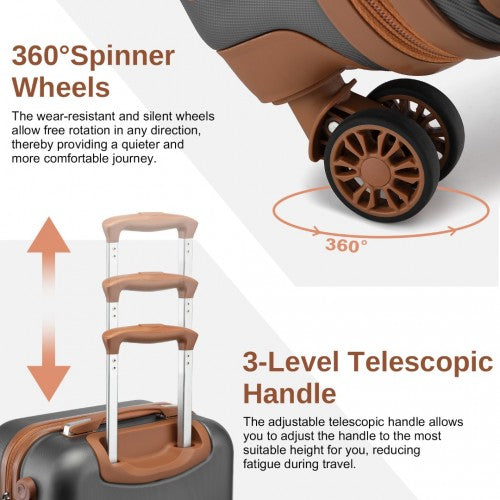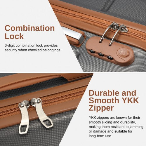 This 20-inch suitcase offers a blend of style and functionality, featuring durable ABS construction, smooth YKK zippers, 360-degree rotating wheels, an adjustable handle, a secure combination lock, and a well-organized interior for easy and secure travel.
