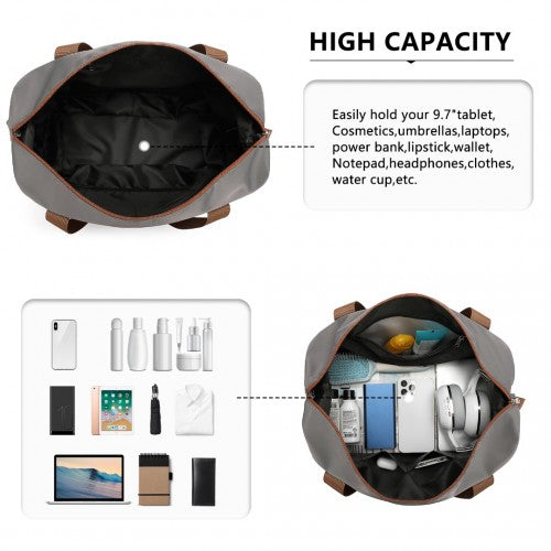 The travel bag set is made of waterproof nylon fabric with polyester interior.