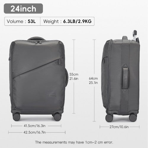 Kono 24 Inch Lightweight Durable Soft Shell Suitcase with TSA Lock and Separate Wet/Dry Compartment - Grey