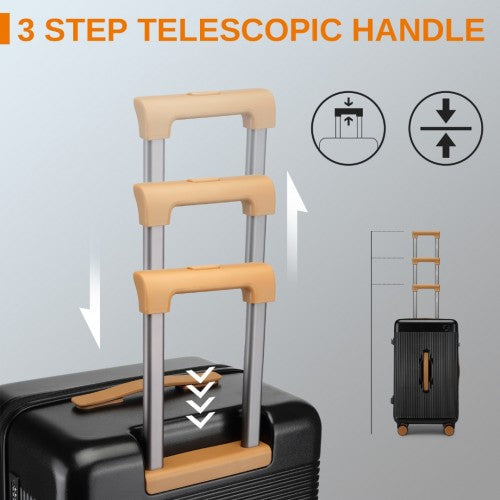 Customize the suitcase to your comfort with an adjustable telescopic handle, complemented by conveniently placed top, side, and front handles for easy lifting and carrying.