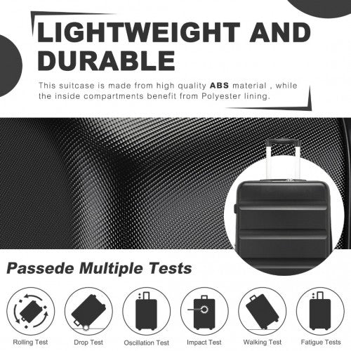 Kono 3-Piece Horizontal Engraved Hard Shell ABS+PC Suitcase with TSA Lock - Black