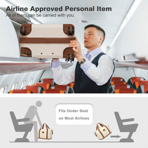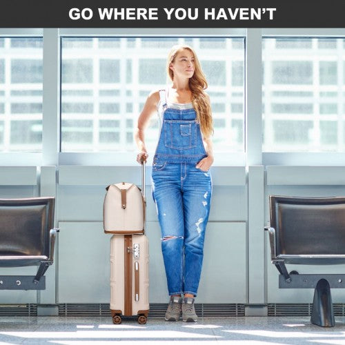Kono Abs 4 Wheel Suitcase Set with Vanity Case, Weekend Bag and Toiletry Bag - Beige/Brown