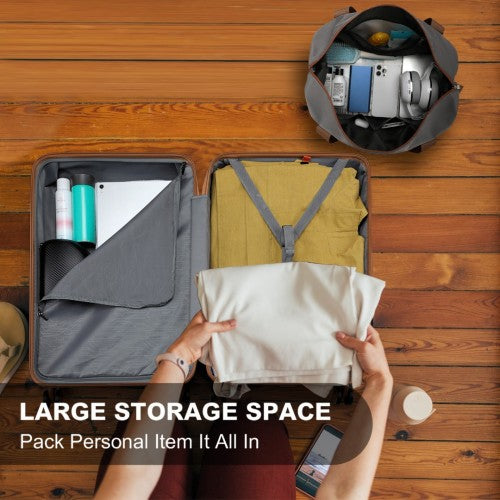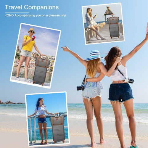 Kono Abs 4 Wheel Suitcase Set with Vanity Case, Weekend Bag and Toiletry Bag - Grey/Brown