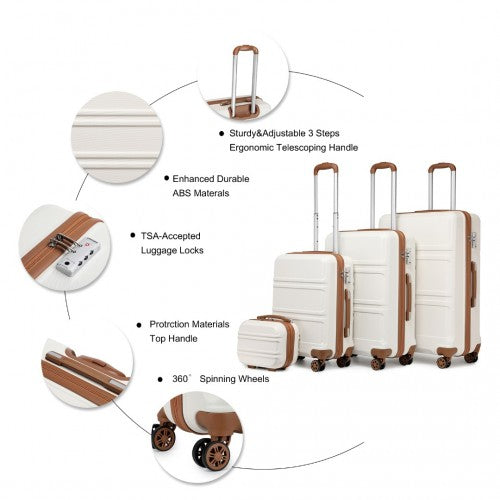 Kono ABS Sculpted Horizontal Design 4 Pieces Suitcase Set With Vanity Case - Cream