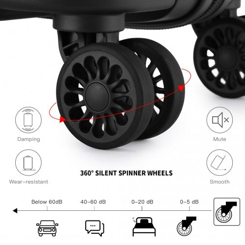 Kono Bright Hard Shell PP Suitcase With TSA Lock And Vanity Case 4 Pieces Set - Classic Collection - Black