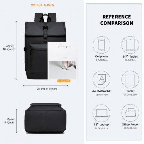 Large enough for a water bottle, folding umbrella, A4 magazines digital device(15.6 inch laptop, notepad, tablet, kindle power bank) etc.