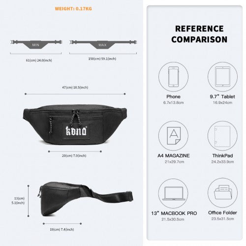 Kono Lightweight Fashion Sports Bum Bag For Men And Women - Black