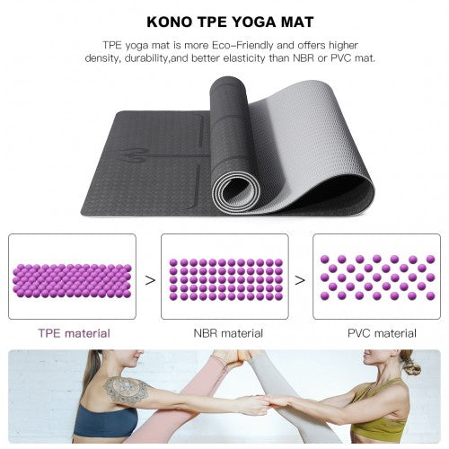 Kono TPE Non-Slip Classic Yoga Mat - Black & Grey