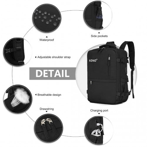Kono Ultimate Traveler's Backpack with Detachable Waist Pack and Integrated USB/Type-C Charging Ports - BlackKono Ultimate Traveler's Backpack with Detachable Waist Pack and Integrated USB/Type-C Charging Ports - Black