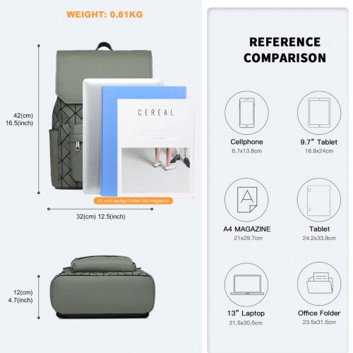 Kono Water-Resistant Urban Geometric Backpack with Laptop Compartment - Green