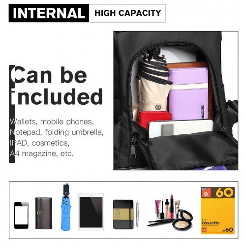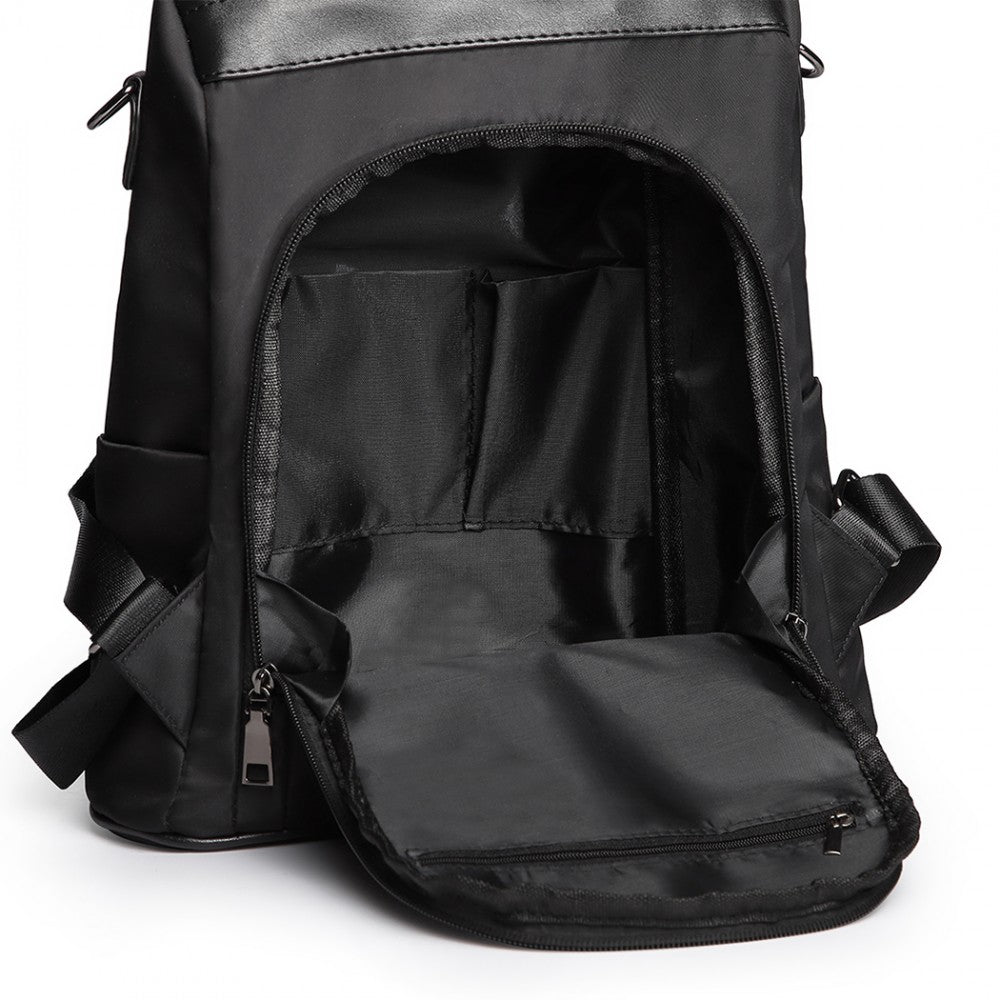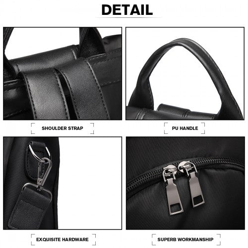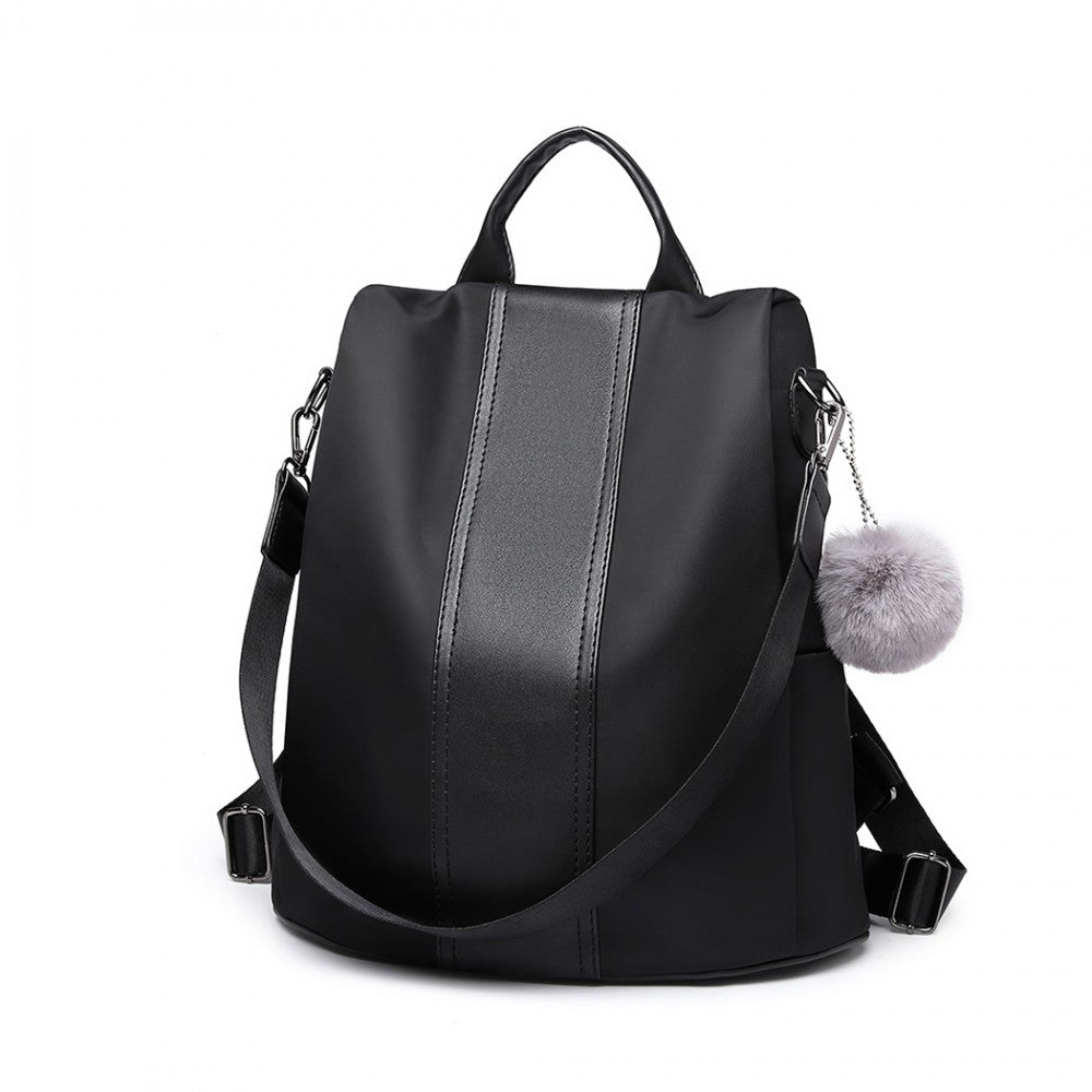 Miss Lulu Two Way Backpack Shoulder Bag With Pom Pom Pendant - Black