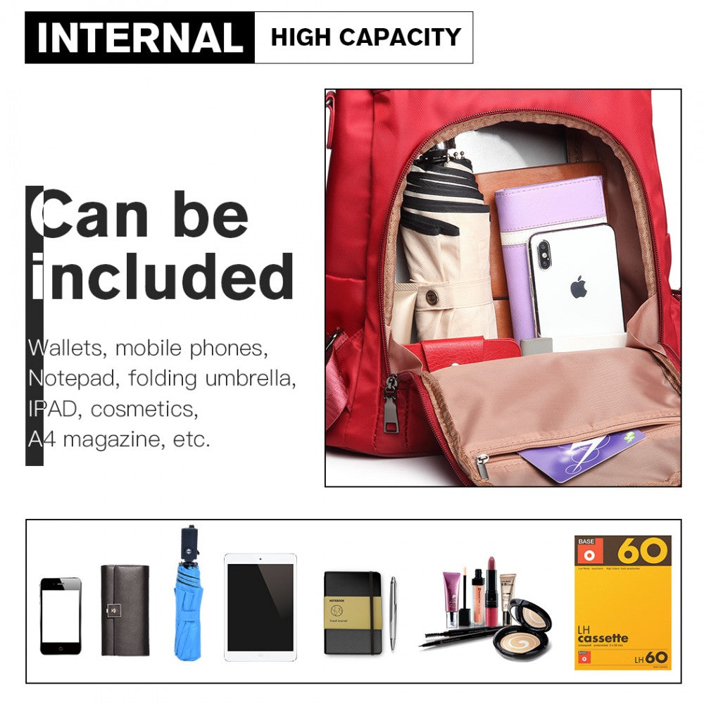 Miss Lulu Two Way Backpack Shoulder Bag With Pom Pom Pendant - Red