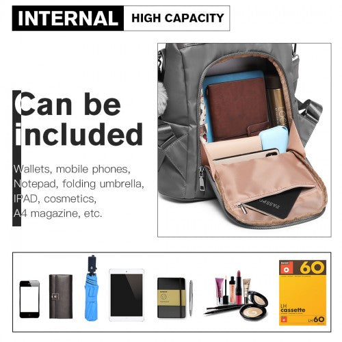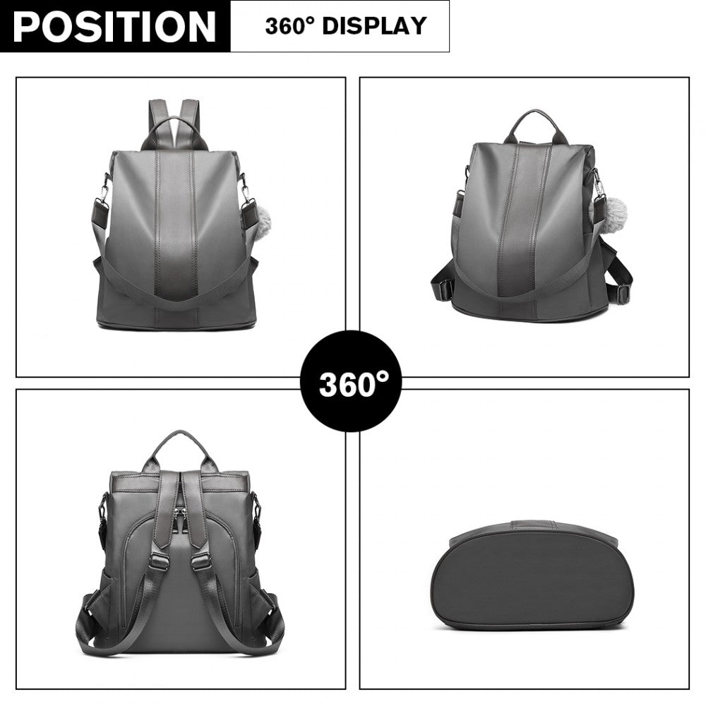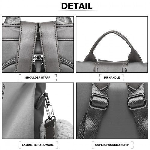 Miss Lulu Two Way Backpack Shoulder Bag With Pom Pom Pendant - Grey
