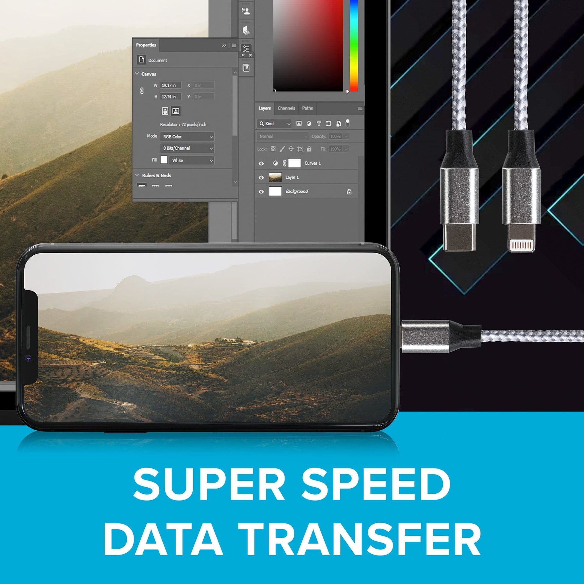 Maplin Lightning to USB-C 20W Fast Charging Braided Cable - Silver, 2m