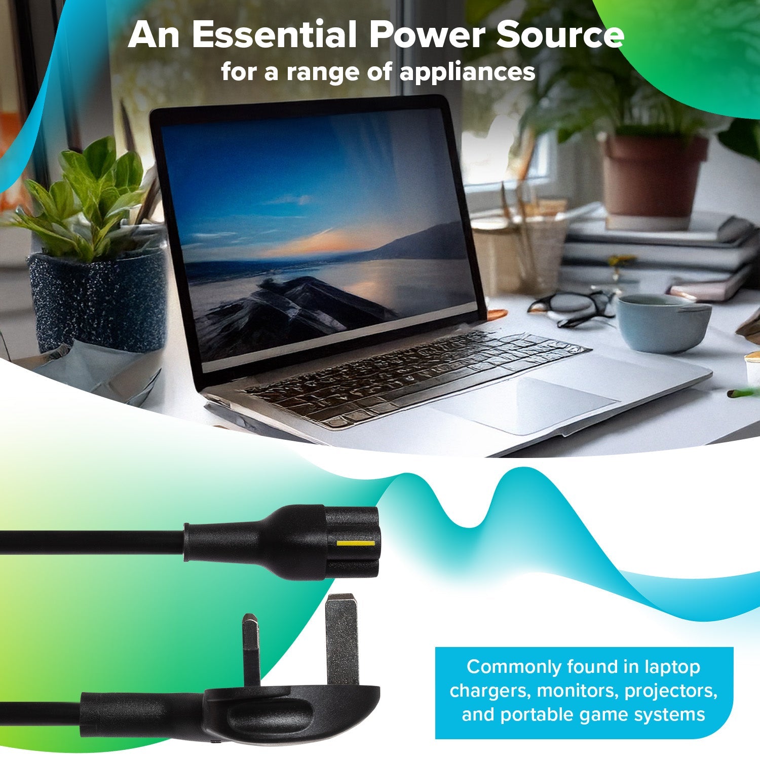 Maplin Power Lead IEC C5 Clover Leaf Plug Female to UK 3-Pin Plug - 2m, 5 Amp Fuse