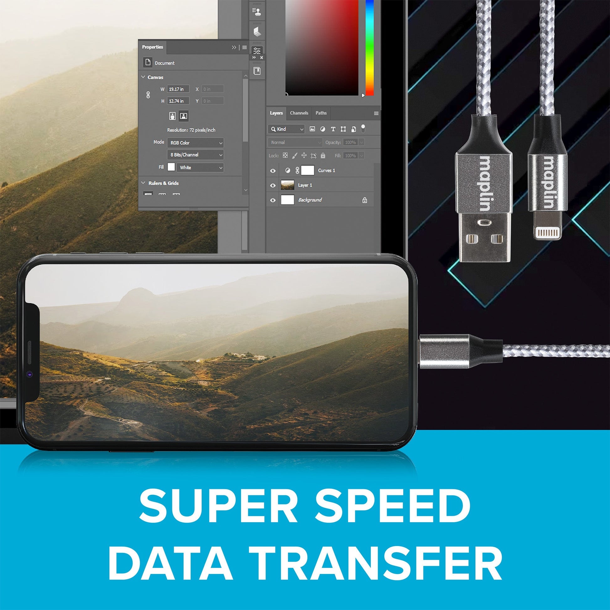Maplin Premium Apple MFI Certified Tangle-Free Lightning to USB-A 2.0 Cable - Silver, 3m