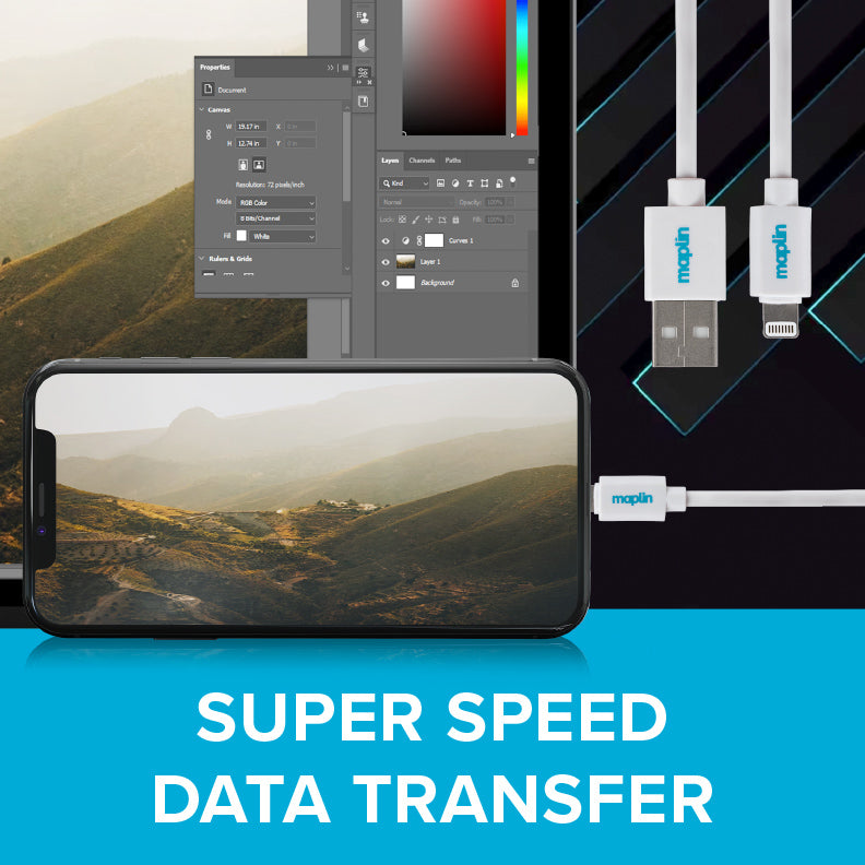 Maplin Premium Apple MFI Certified Tangle-Free Lightning to USB-A 2.0 Cable - White, 1.5m