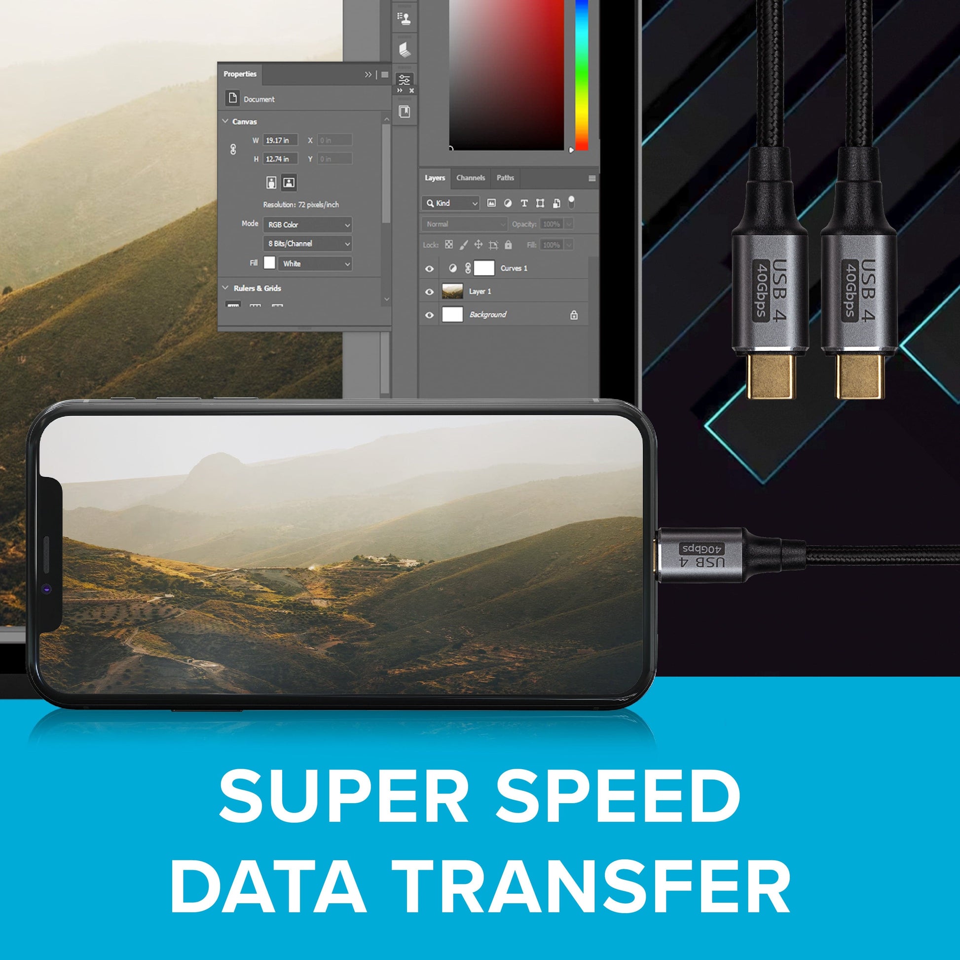 Maplin Pro USB-C to USB-C v4.0 40Gbps 8K@60Hz Super Speed Braided Cable - Black, 1.2m