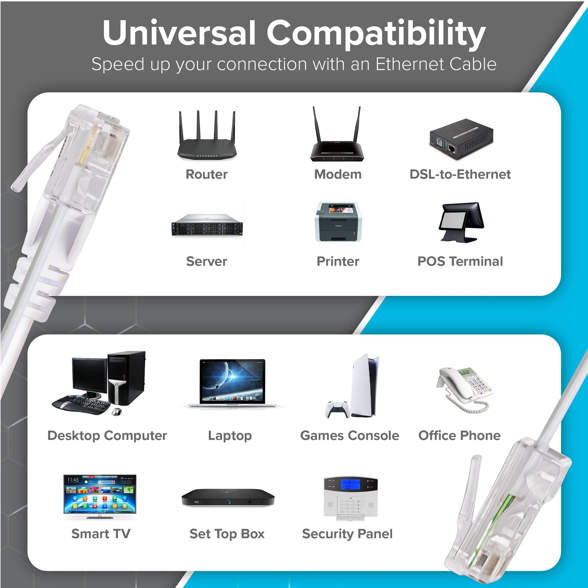 Maplin RJ11 Connector to RJ45 Plug Telephone Lead - White, 1m