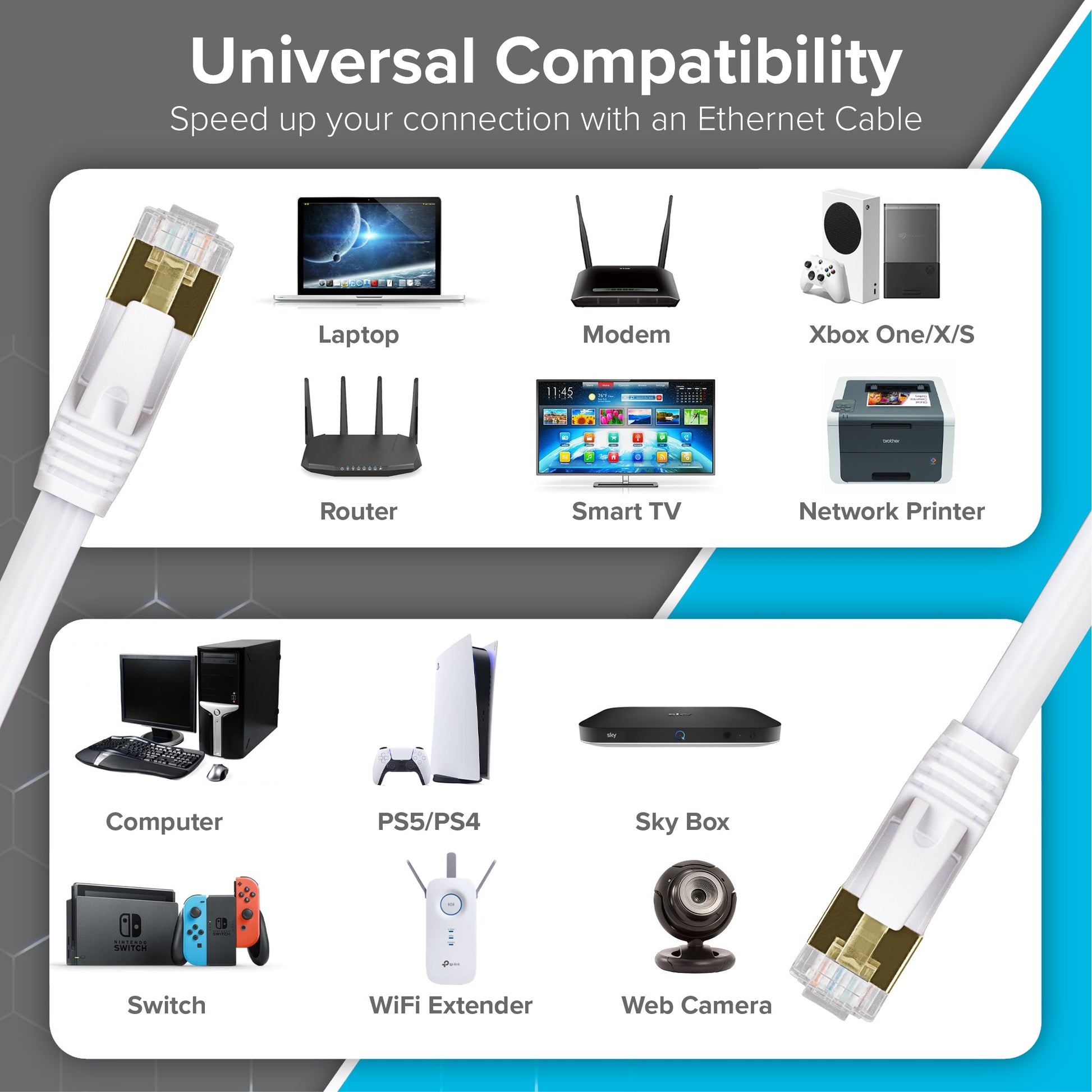 Maplin RJ45 CAT7 Flat Ethernet LAN Cable - White