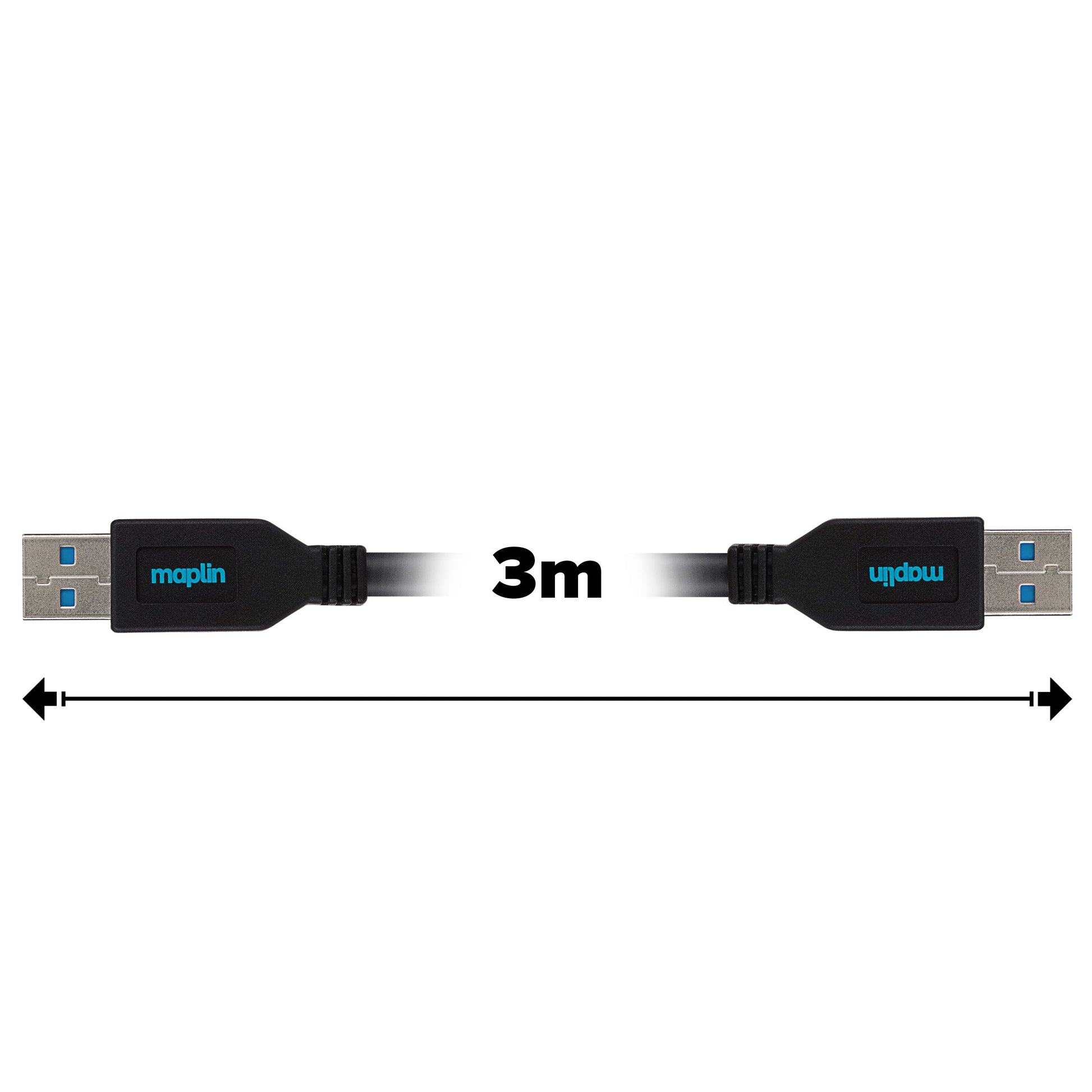 Maplin USB-A 3.0 to USB-A 3.0 Super Speed 5Gbps Cable - Black, 3m