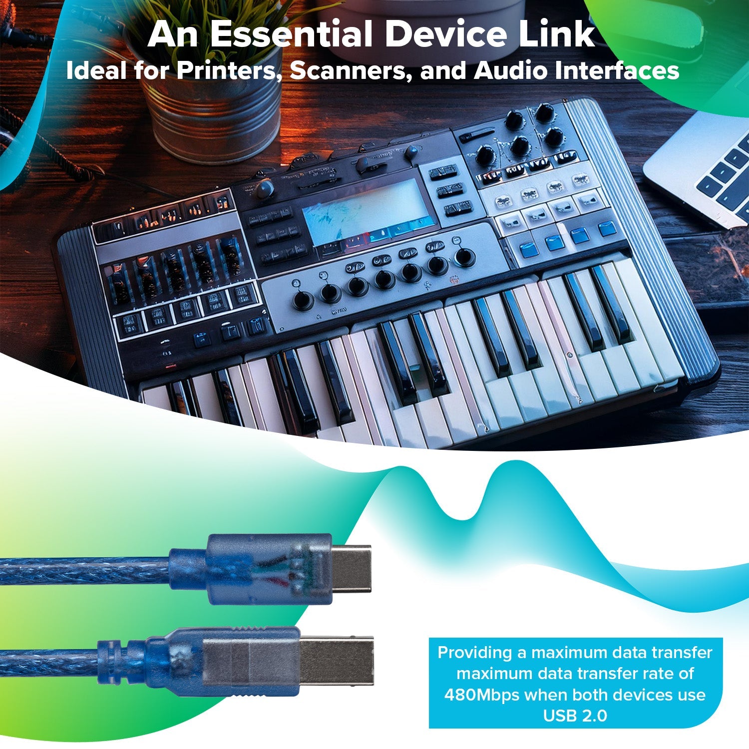 Maplin USB-C to USB-B Cable - Blue, 1m