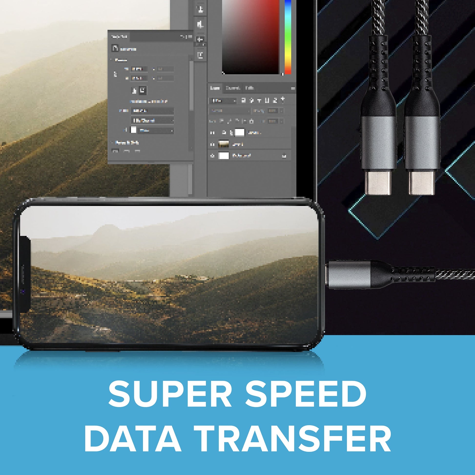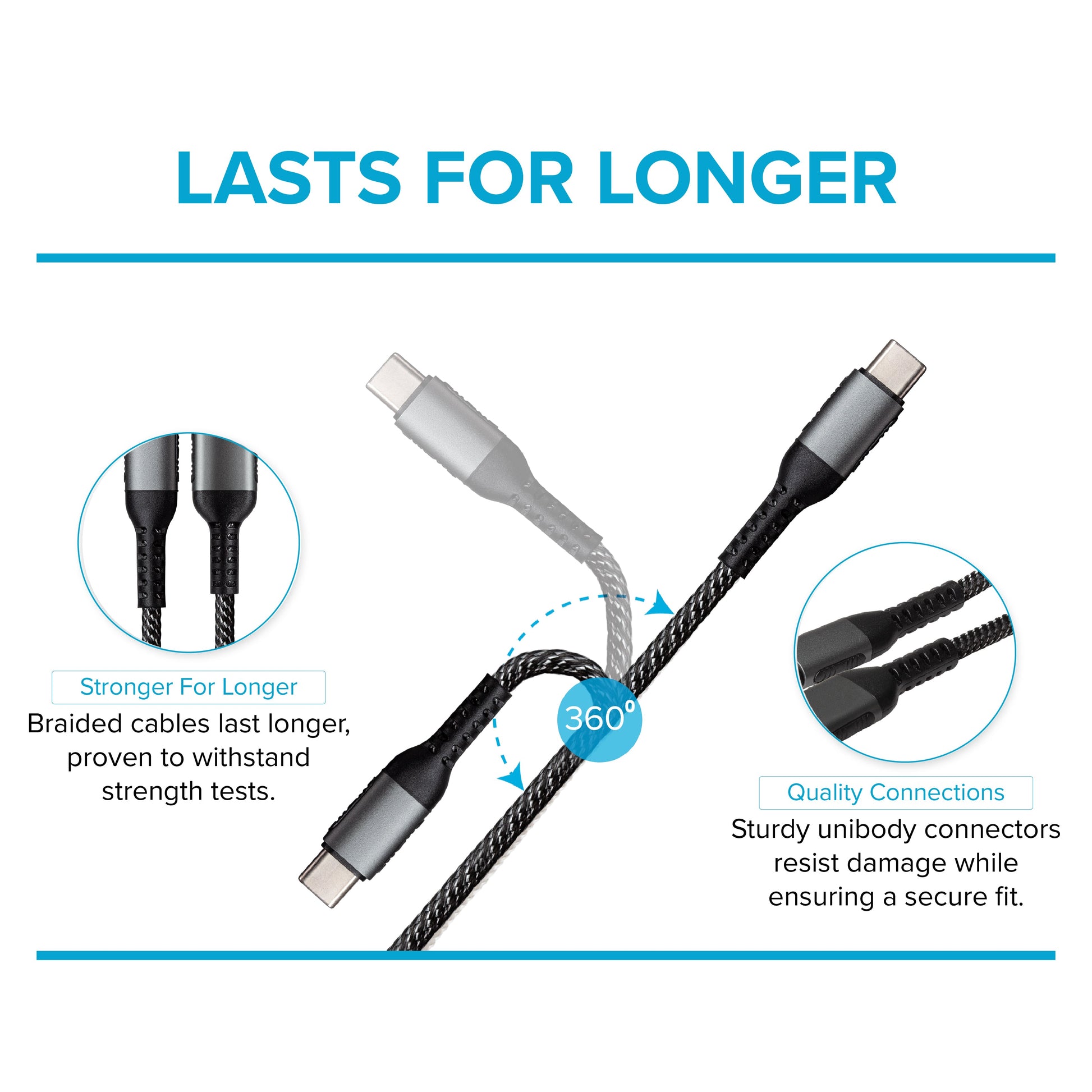 Maplin USB-C to USB-C 60W PD Braided Cable - Silver
