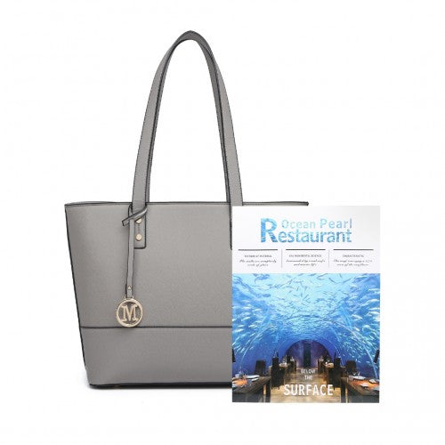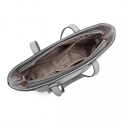 Miss Lulu 3 Piece Leather Look Tote Bag Set - Grey
