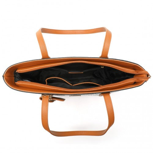 Miss Lulu 4 Pieces Glossy Leather Tote Bag Set - Black And Brown