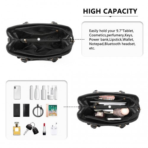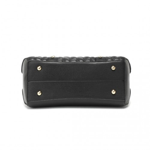 Miss Lulu Chic Quilted PU Leather Tote Handbag With Bow Accents - Black
